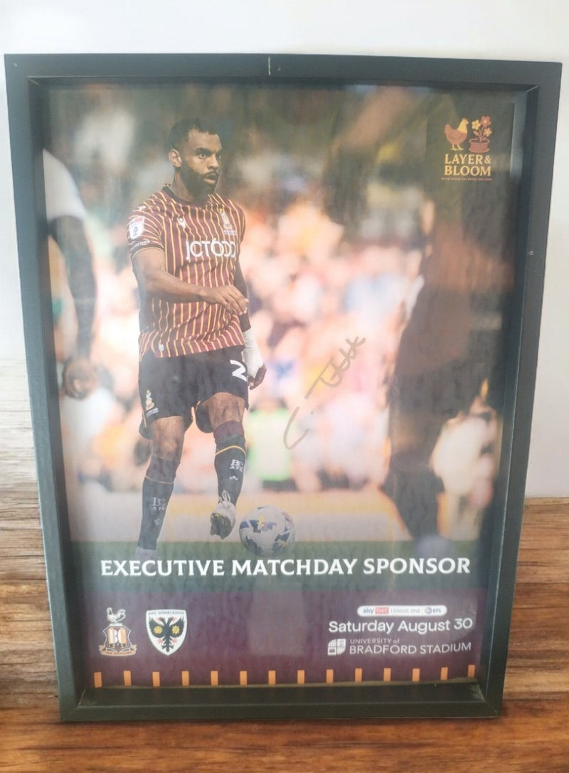 We are delighted to announce we were the "executive matchday sponsor" today for the EFL League One match between Bradford City and AFC Wimbledon. Was a delightful experience, we were wined and dined by The Bantams and were presented with some signed merchandise by the player of the match Bobby Pointon at full time.